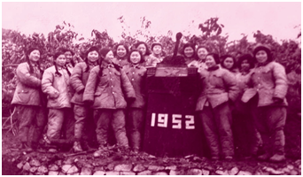 1950年12月31日,我们从辽阳出发前,蒋指导员对他俩说:“你们的任务就是把她们5个女同志送到军部。”出发的当天晚上,我们住在丹东的一个旅店里。1951年1月1日清晨,我们高唱着“雄赳赳,气昂昂,跨过鸭绿江”战歌进入了朝鲜(因为当时我们没有制空权,为躲避敌人的飞机,无论是行军还是行车,都只有白天休息,夜间行动)。当天白天,在一个叫“平原涧”的地方休息。这家老乡见我们几个“么生动母”(朝鲜语是女同志)非常惊喜,用朝鲜语热情地和我们打招呼,高兴地拿出“海瓜”(朝鲜语是苹果)给我们吃。与朝鲜老乡相处了一整天,慢慢地就熟了。经过商量, 同意我们拿出部队发给的朝币买了几筐苹果,想等到了军部给自己所在部队的同志们吃,作为我们的见面礼。由于我们年轻,又没见过战场,脑子里不知道什么叫害怕,更没有“死”的概念。途中有一天白天,我们几个在山上的亭子里,还兴奋地跳起了交谊舞,真够浪漫的。我还清楚地记得汽车开到平壤的那天晚上,由于天黑看不清楚路,我们坐的中型卡车掉进了炸弹坑里,两个男同志根本无法将车抬上来,多数老百姓都逃走了,怎么办?急得我们几个女同志都慌了。后来好不容易找到几个朝鲜老乡帮忙把车抬上来了,大家终于松了口气。到达军队驻地后,我仍在保卫部工作,负责清理战利品,后来根据需要又被分到宣传部文印组工作,在坑道里刻钢板,印制《立功报》(三十九军军报)。战场上《立功报》的作用很大,宣传战斗英雄事迹,进行战场鼓动,通报战役战斗战绩,介绍战役战术要领,了解抗美援朝形势,报道国内经济发展形势,深受志愿军官兵的喜爱。1952年4月,因我要与高克同志完婚,直接调到三四八团。