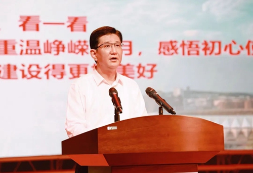 北京新四军研究会会长张晓龙在致辞中讲诉了爷爷新四军江北指挥部指挥、新四军副军长、二师师长张云逸与盱眙人民的故事,表达了对盱眙这片土地深厚的感情。他表示,三载黄花千棵柳,一塘碧水万年情。盱眙这片红土地已显示出高质量发展的蓬勃生机。今后,北京新四军研究会要加强与地方的合作,用好红色资源,传播红色文化,助推老区发展。