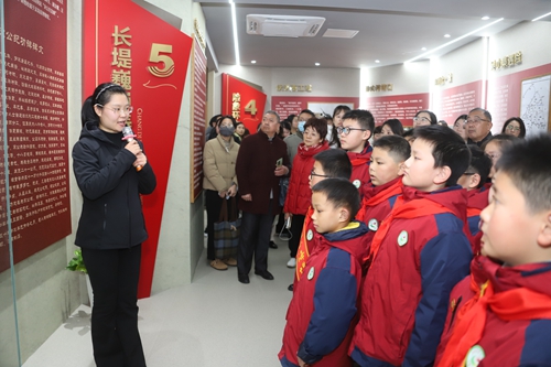 胡哲同学向大家描述了宋公堤遗址现状,并邀请大家共赏宋公堤下好风景。陈展馆内一张张图片、一幅幅场景、一件件陈列物品,展现了当年修筑堤可歌可泣的奋斗历程和丰功功绩,将同学们又带回那波澜壮阔的峥嵘岁月。通过本次活动,大家不仅对宋公堤的历史有了更深入的了解,也更加深刻感悟宋公堤精神。